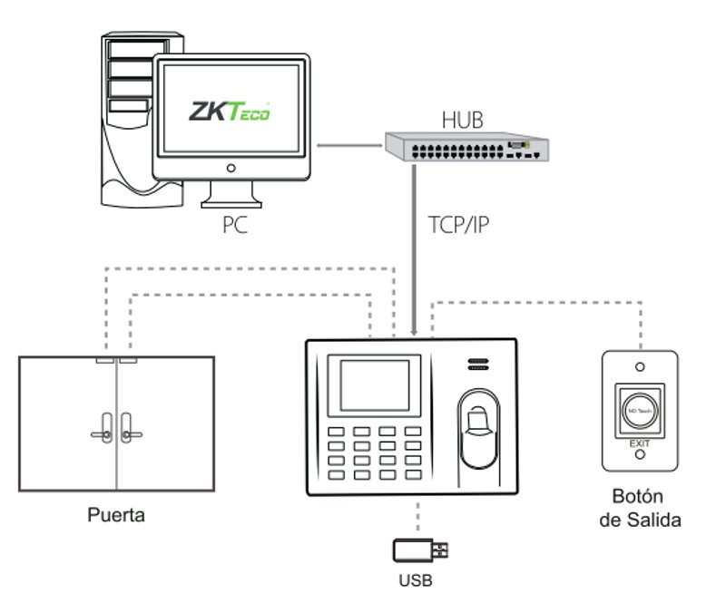 - Conexión mediante TCP/IP para una integración fácil con otros dispositivos y sistemas de control de asistencia a nivel corporativo.