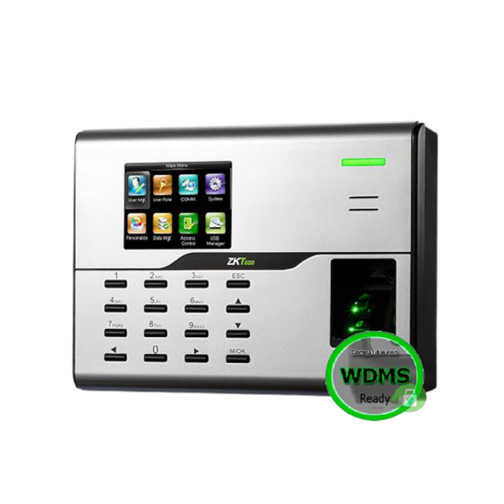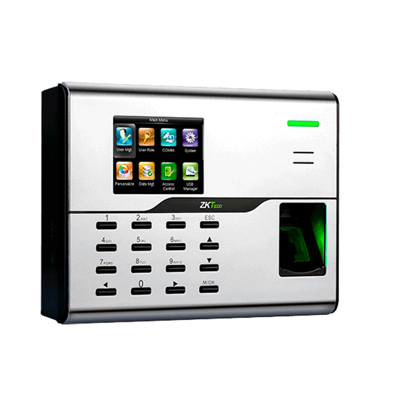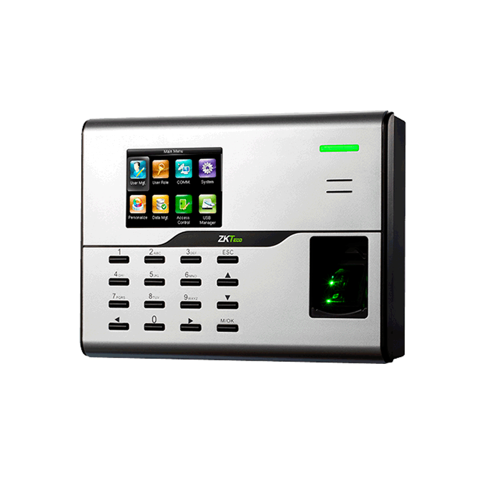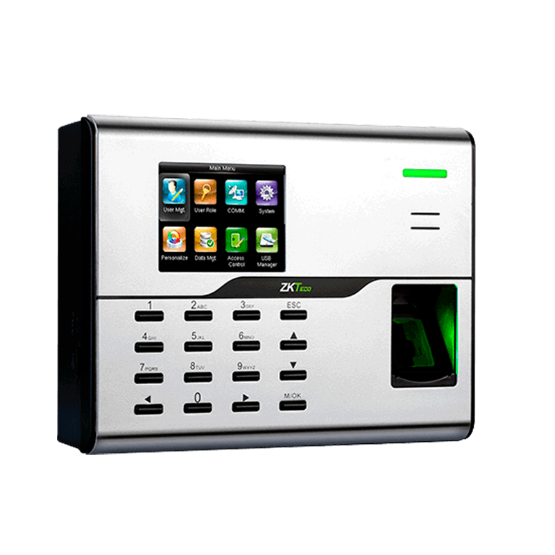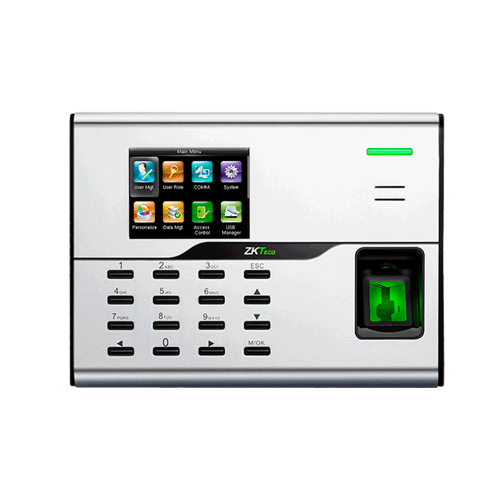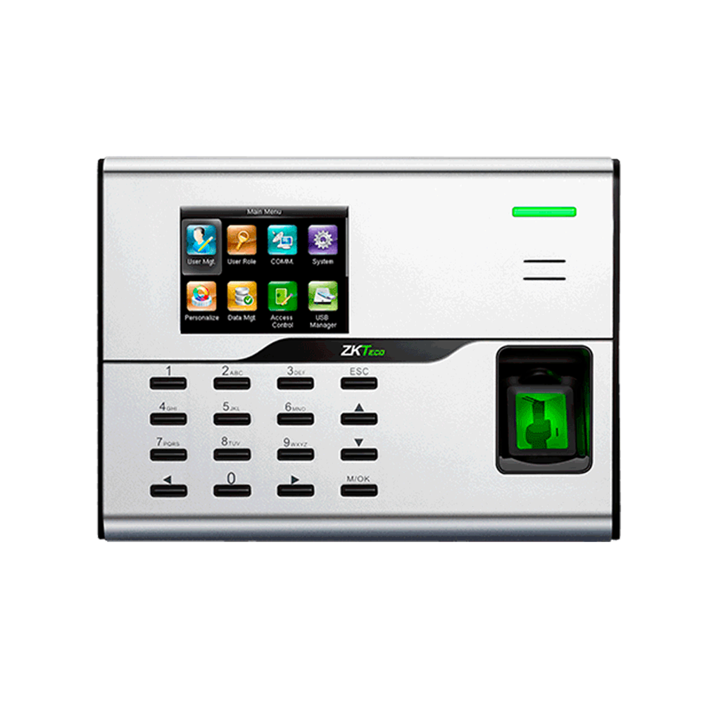 ZKTeco UA860 es una terminal biométrica con pantalla a color de 2.8 pulgadas, diseñada para realizar la gestión de Tiempo y Asistencia y aplicaciones de Control de Acceso básico. Integrado con el lector de huella digital BioID para un reconocimiento y verificación de forma eficaz, así como Wi-Fi interno para comunicación en red inalámbrica.